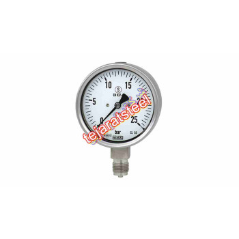 - موجود در رنج های : NS 50: 0 - 1 to 0 - 400 bar NS 63, 100 : 0 - 0.6 to 0 - 1000 bar دارای دقت ( Accuracy ) : NS 50, 63 : 1.6 NS 100 : 2.5 دارای گواهینامه استاندارد EN 837-1